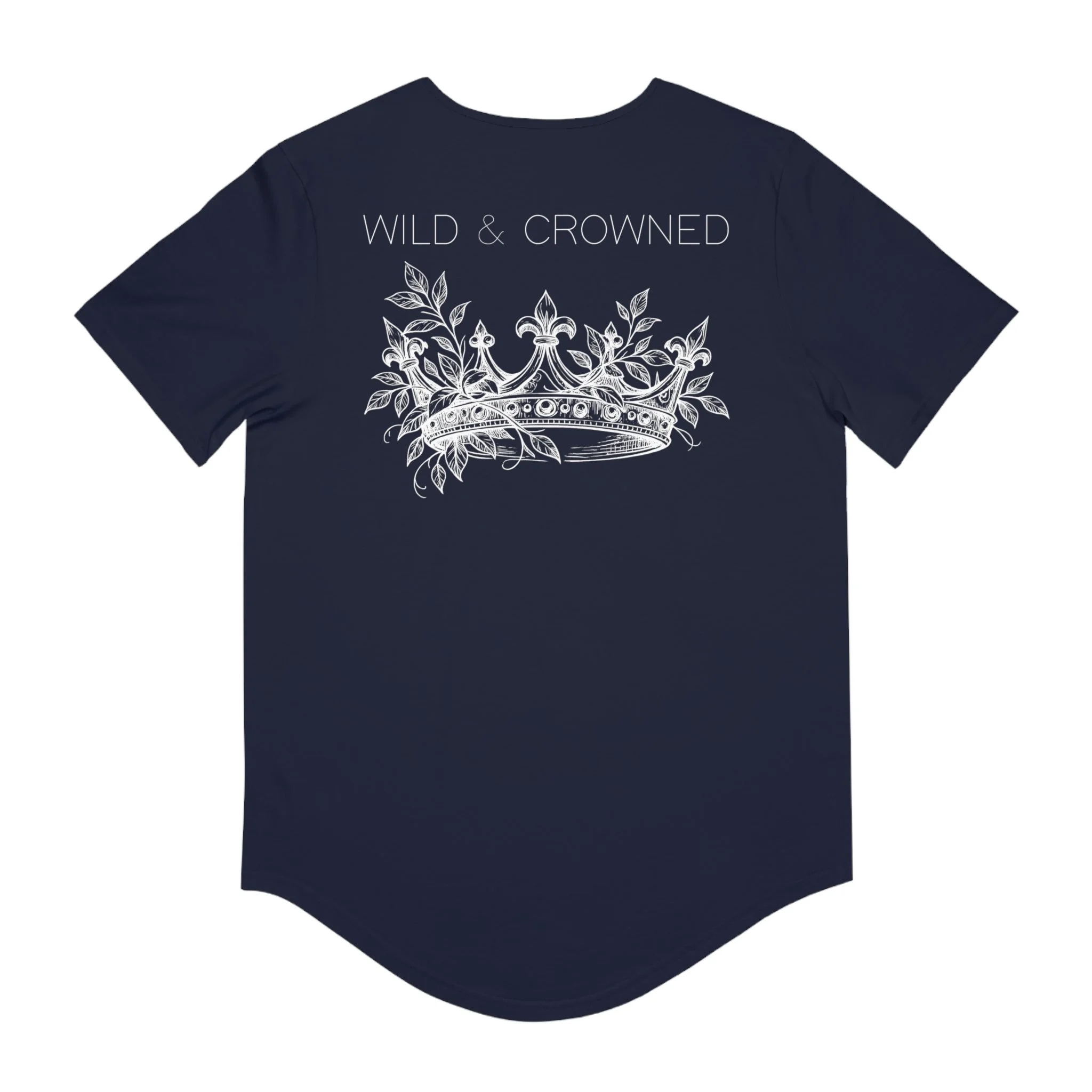 A lightweight, curved-hem tee that blends effortless comfort with understated, artful detail. Soft airlume combed cotton feels gentle against the skin while the retail fit and side seams keep the silhouette clean and modern. A small Liminal emblem sits over the chest and a finely illustrated crown with delicate foliage sits across the upper back beneath the subtle phrase “WILD & CROWNED,” giving the shirt a quiet, nature-meets-regal attitude. Wear it layered under a jacket for city days or alone for laid-back weekends when you want a hint of thoughtful design without shouting for attention.